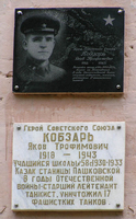 В разделе выставки «Наши земляки – участники Курской битвы» представлен материал о кубанцах, воевавших на курской земле. Мы хотим вам рассказать о легенде бронетанковых войск нашей страны Герое Советского Союза Якове Трофимовиче Кобзаре. Родился он в 1918 году в станице Пашковской (ныне входит в состав Краснодара), в крестьянской семье. С малых лет, после смерти отца, помогал матери. Получил начальное образование. Работал сцепщиком на железнодорожной станции «Краснодар». Старший лейтенант Я.Т. Кобзарь отличился в боях с 26 ноября по 1 декабря 1942 года в районе населённых пунктов Новая Гринёвка, Арестово, Малое Кропотово Сычёвского района Смоленской области в ходе операции «Марс». По оценке командира батальона, «отлично руководил боем своего подразделения… В бою дерзок, смел и решителен». Со своим экипажем танка Т-34 уничтожил 2 средних танка, 1 тяжёлый танк, подбил 2 самоходных орудия и захватил их, уничтожил 3 противотанковых орудия, 4 дзота, 1 машину с боеприпасами, 1 машину с пехотой, а также до 180 солдат и офицеров противника. Взорвав полотно железной дороги Сычёвка-Ржев, нарушил сообщение и телефонную связь противника. За этот эпизод 3 декабря 1942 года был представлен командованием батальона к ордену Отечественной войны I степени, но был награждён орденом Красной Звезды. 8 июля 1943 года в месте расположения села Верхопенье Ивнянского района, тогда входившего в Курскую область, Я.Т. Кобзарь сдерживал в несколько раз превосходящего противника, умело управляя своей ротой, проявил храбрость и геройство. В этот день рота уничтожила и вывела из строя много боевой техники врага. Под вечер того же дня противник бросил на наши позиции еще большую группу танков. Но благодаря героизму и храбрости Кобзаря враг не прорвался на рубеж обороны. В этом бою отличился экипаж командира Кобзаря. Он подбил и сжег за один день 17 танков, из них 4 «Тигра».
