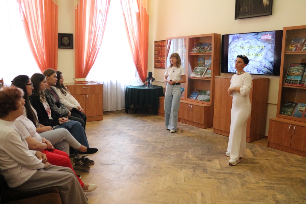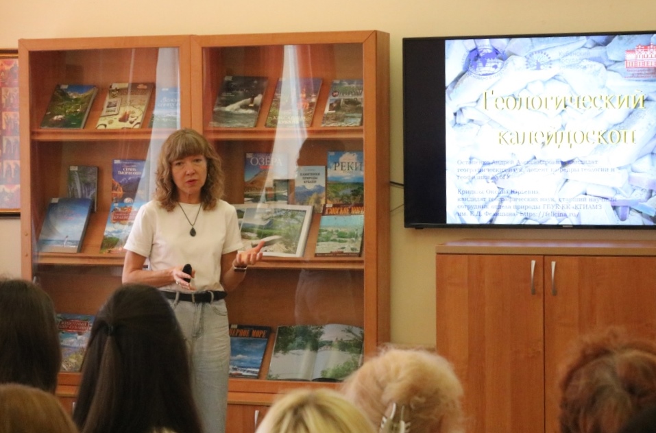 Особенный интерес у молодежи вызвала лекция «Геологические особенности Краснодарского края», которую провела гостья библиотеки – заместитель председателя комиссии спелеологии Краснодарского регионального отделения РГО, кандидат географических наук, старший научный сотрудник отдела природы Краснодарского государственного историко-археологического музея-заповедника им. Е.Д. Фелицына Оксана Юрьевна Крицкая. Оксана Юрьевна рассказала о необычных геологических объектах Кубани, поделилась собственным исследовательским опытом и продемонстрировала образцы уникальных пород.