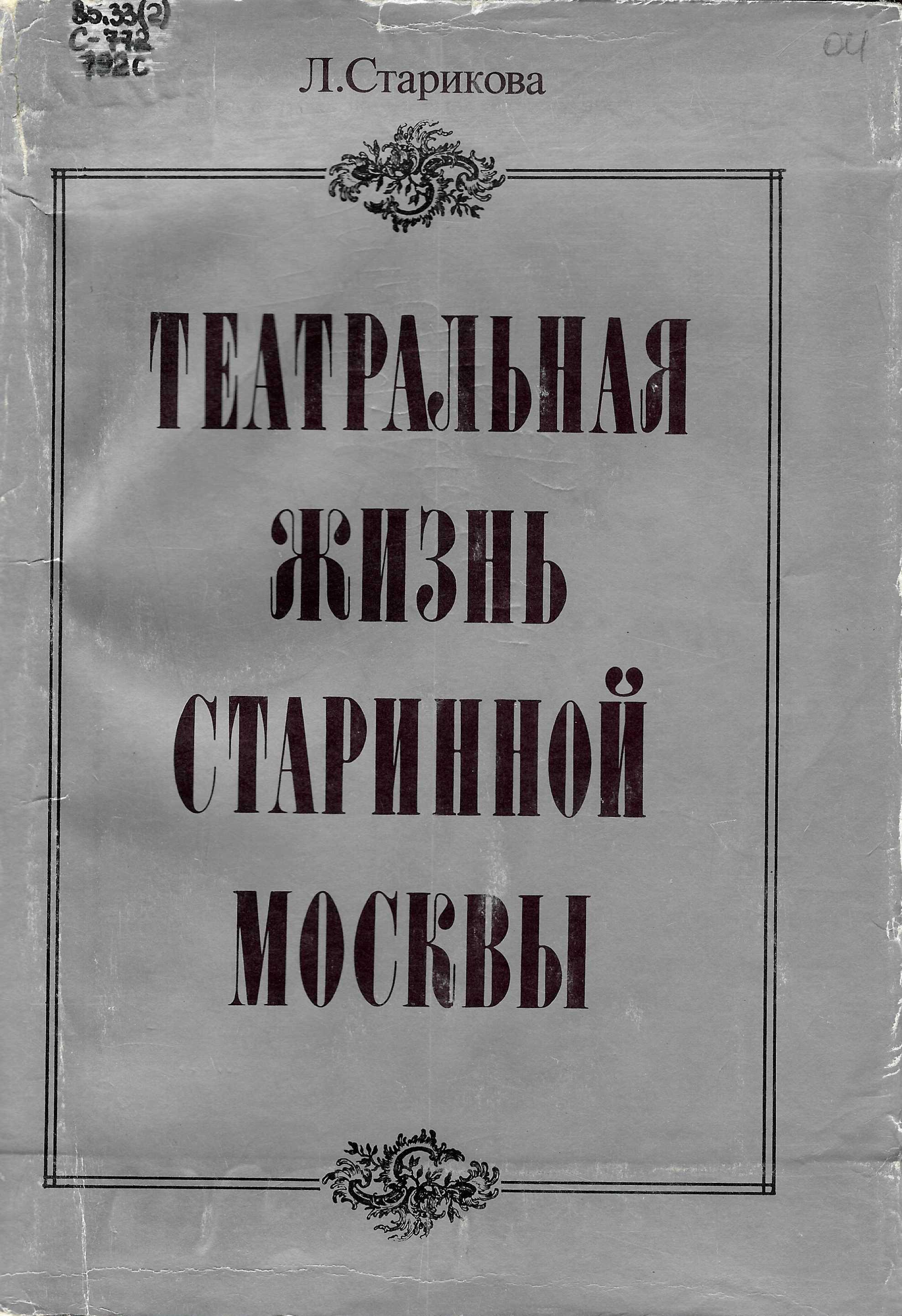 Старикова, Л. М. Театральная жизнь старинной Москвы : эпоха. быт. нравы / Л. М. Старикова. – Москва : Искусство, 1988. – 334 с. : ил.