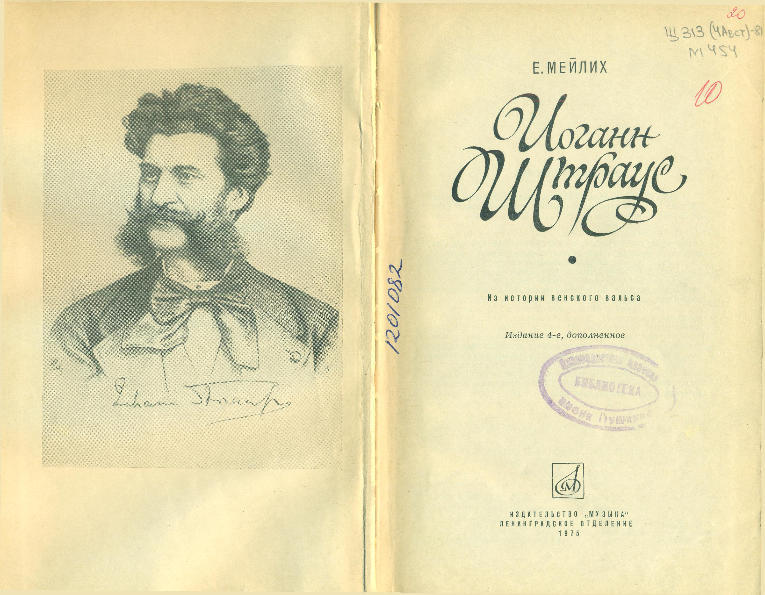 2. Мейлих, Е. И. Иоган Штраус. Из истории венского вальса / Е. И. Мейлих. – Ленинград : Музыка, 1975. – 208 с. : ил.